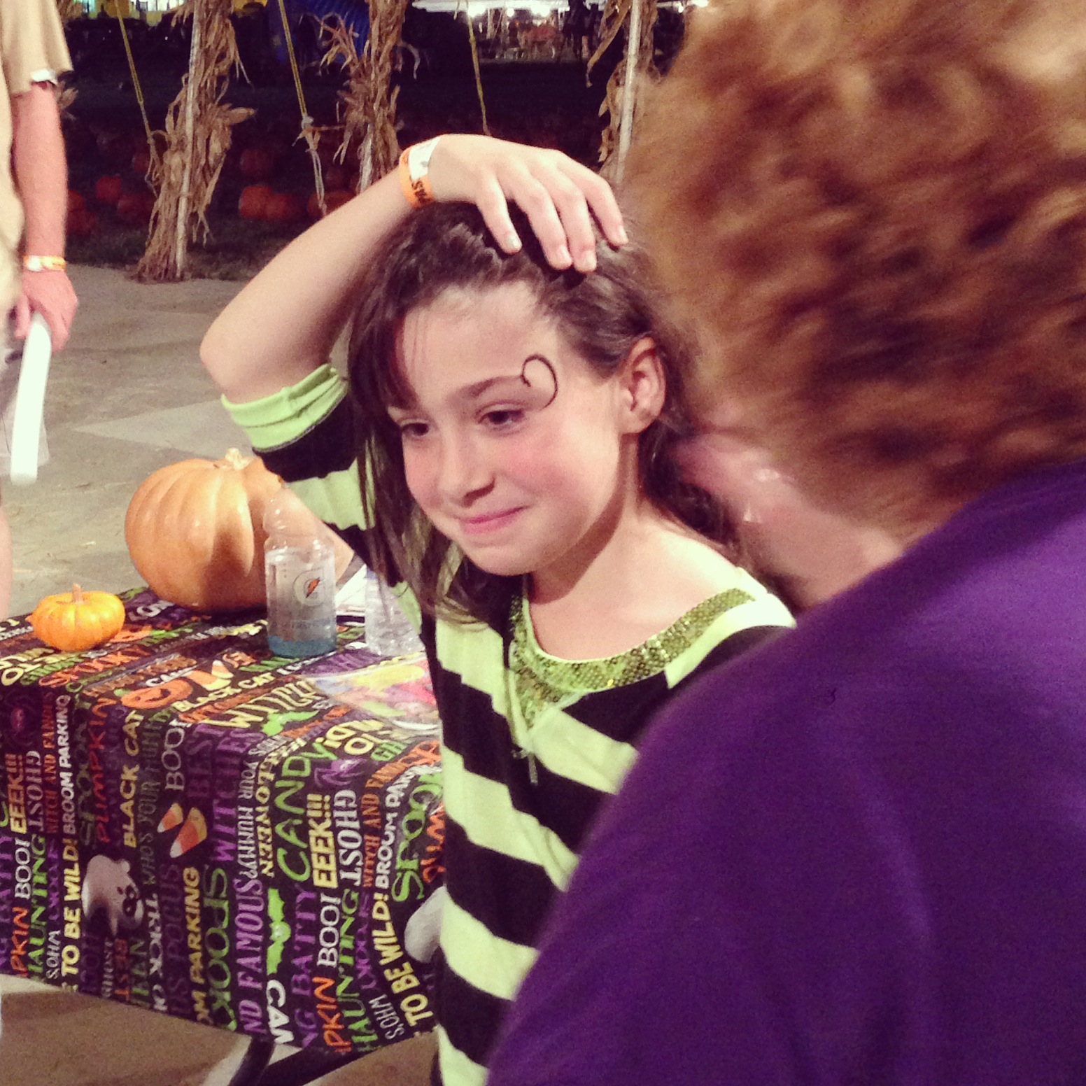 Little Everett snoozed the whole way through. Ella got her face painted while Elisa played pumpkin checkers. Such a fun night…