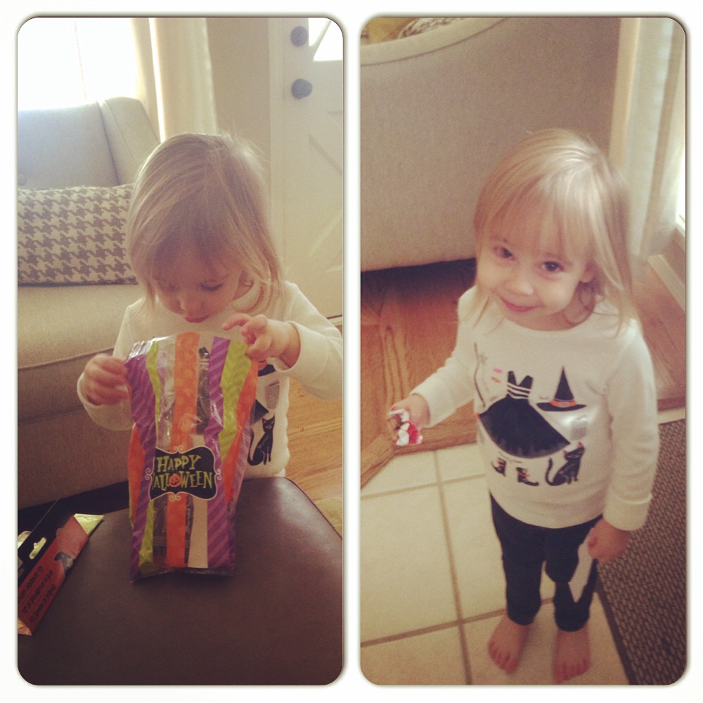 Halloween ended up being such a crazy day. Actually, the whole week leading up to Halloween was oddly busy. We decided to put our house up for sale. After showing it for the second time on Friday morning (Halloween), we were excited to receive an offer on it. Nana and Papa came into town that afternoon too. Elisa was excited to start on her treats early. 🙂