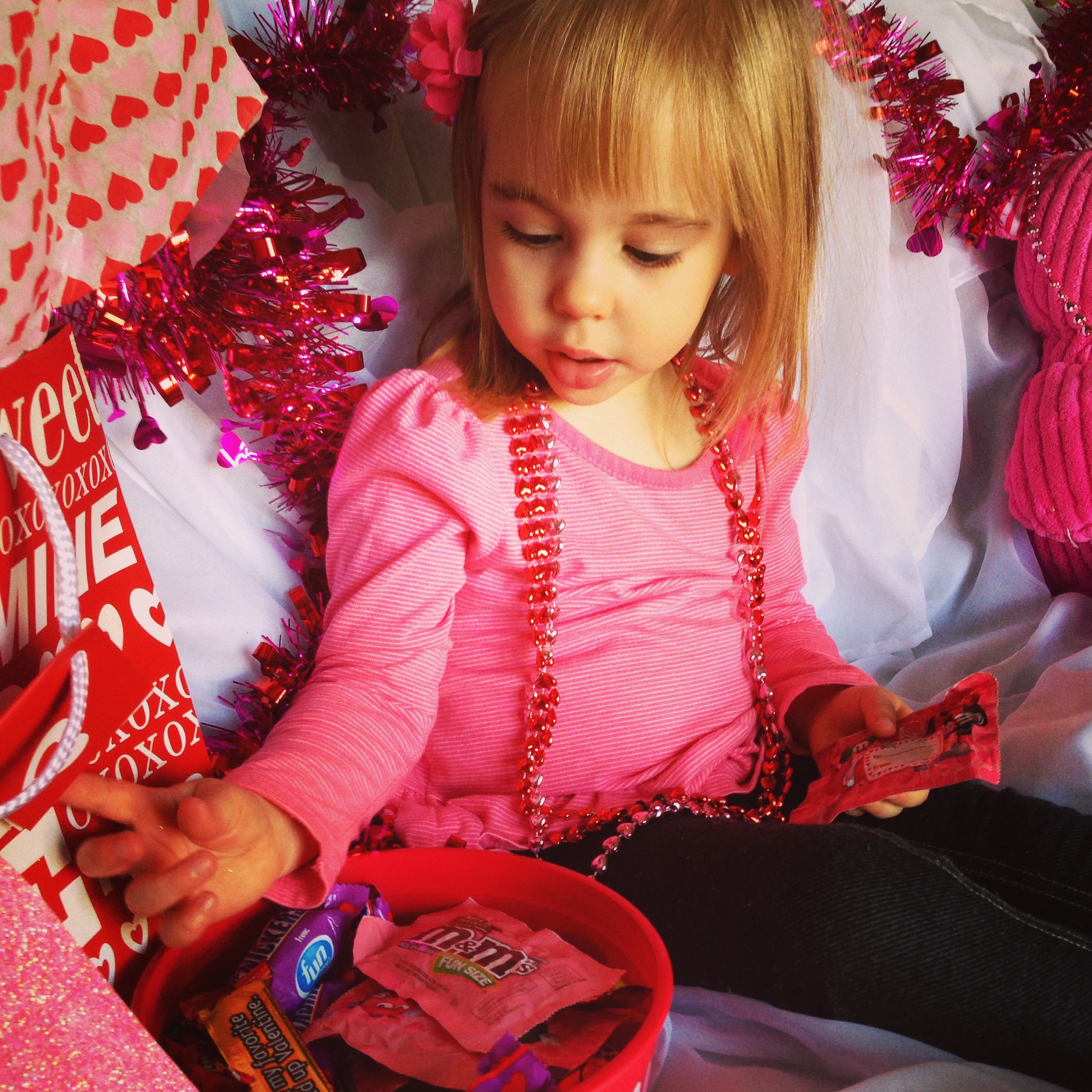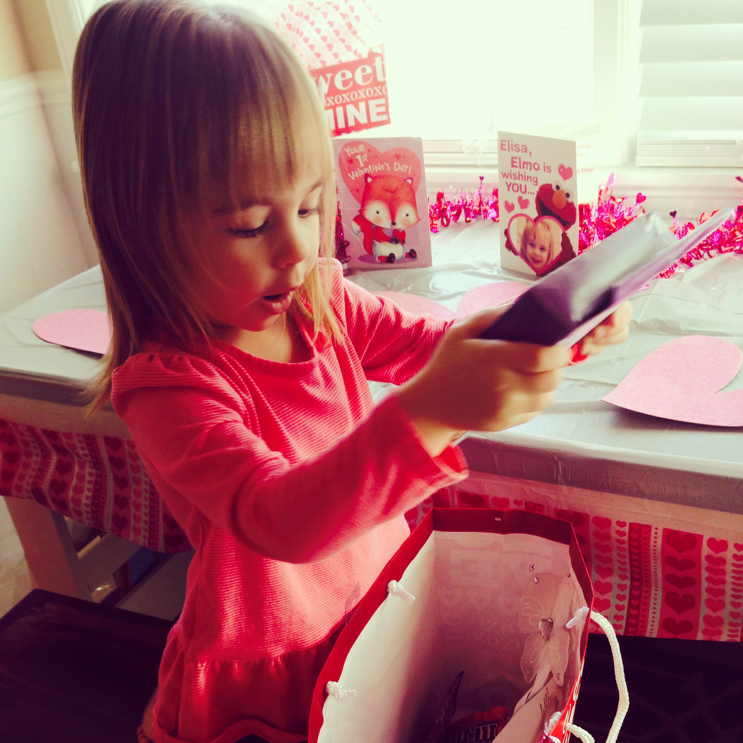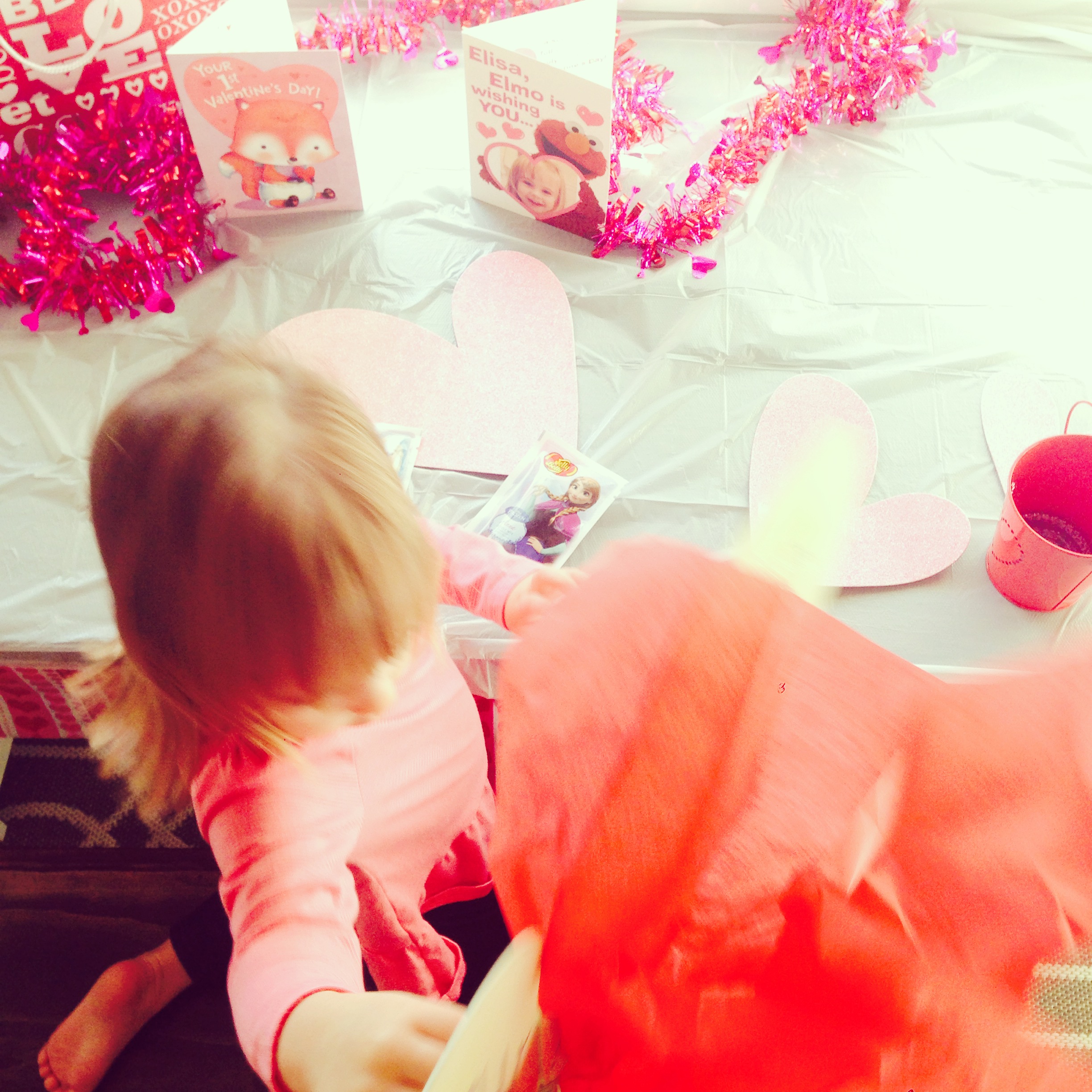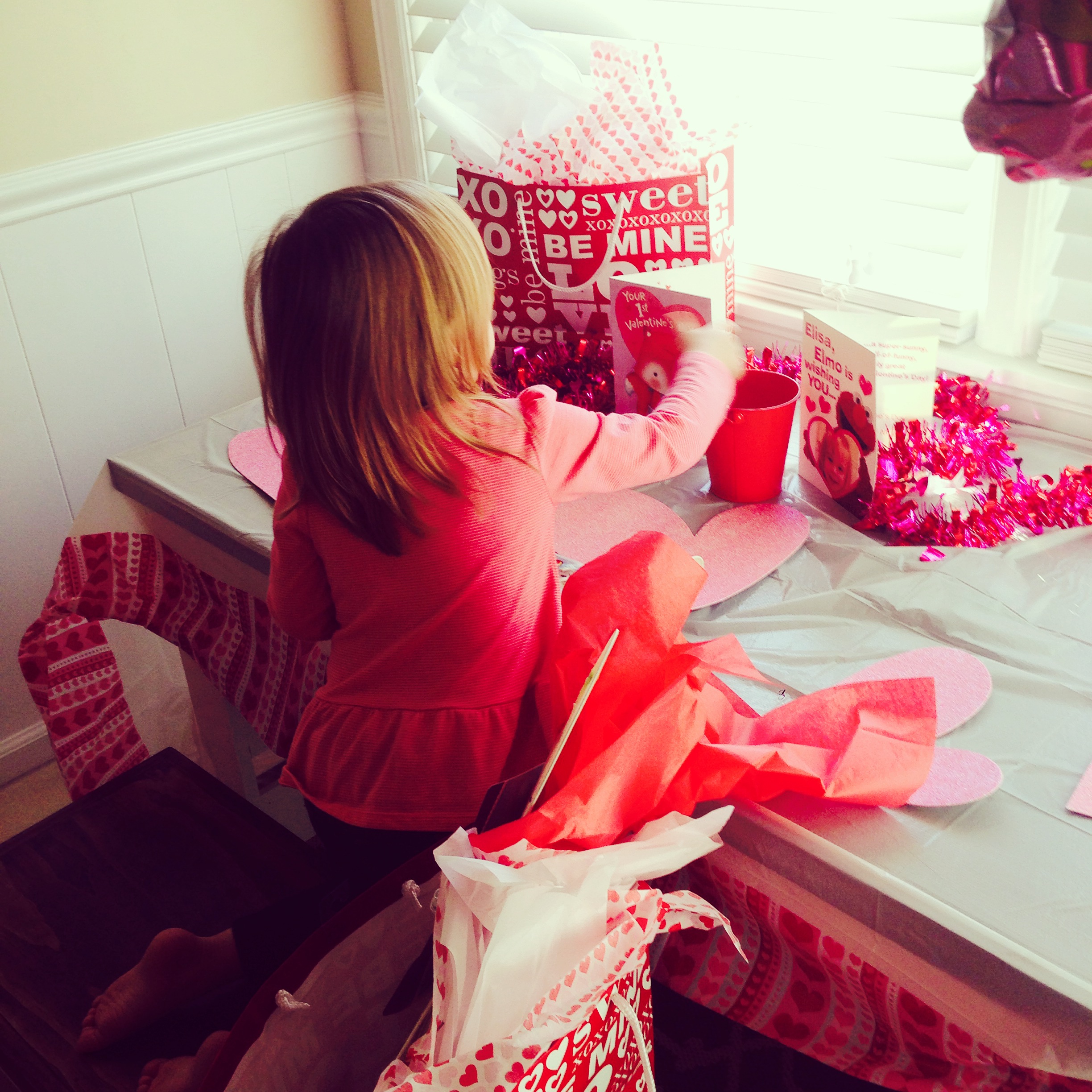 As a kid, I always LOVED Valentine’s Day. The class parties in school with all the paper valentines, handmade boxes, treats galore, and no real school work being done…simply the best! I want Elisa to remember holidays being a blast even at home.