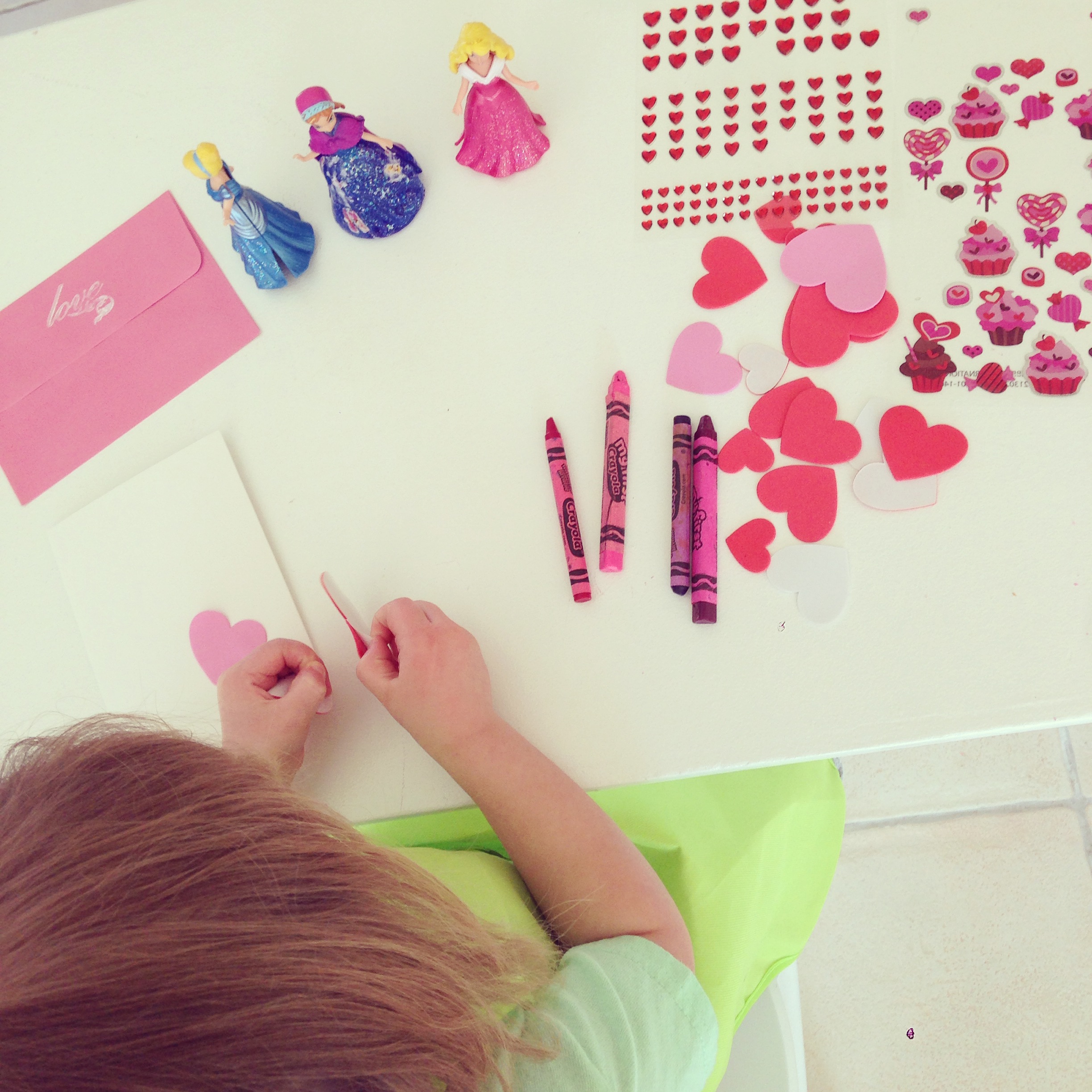 Since the beginning of February, I’ve been finding little activities for her to do. She made little cards to send out to family along with a few IG prints inside each one. She had so much fun decorating the cards. I gave her free reign in putting on the stickers, and she definitely got sticker happy on a few. It was fun to see all the cards lined up before mailing them out.