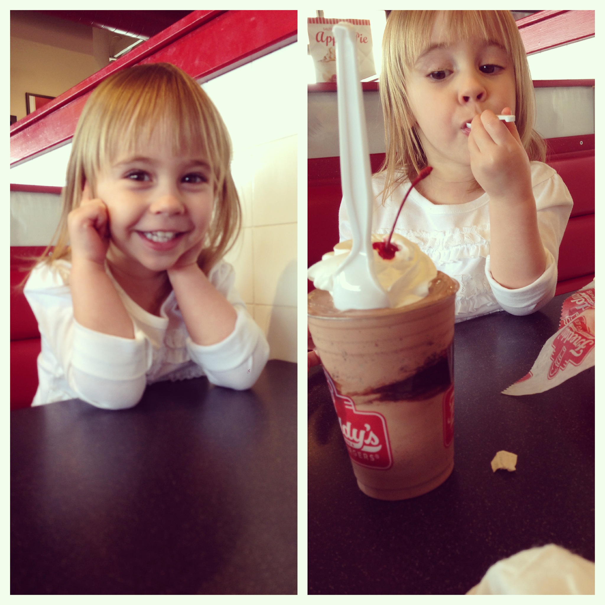 Friday, I took the Bears to run a few errands and to Freddy’s for lunch. Elisa did a great job eating her “chicken and ketchup”, so I treated her to a custard of her choice…Chocolate. Such a woman already. 😉 And she put the hurt on that custard. We barely had any left to take to Josh at work. We stopped by Daddy’s office and dropped off some more sweet treats. Bear loves to sit at the desk and pretend she’s working, so it’s always fun to stop in for a few minutes.