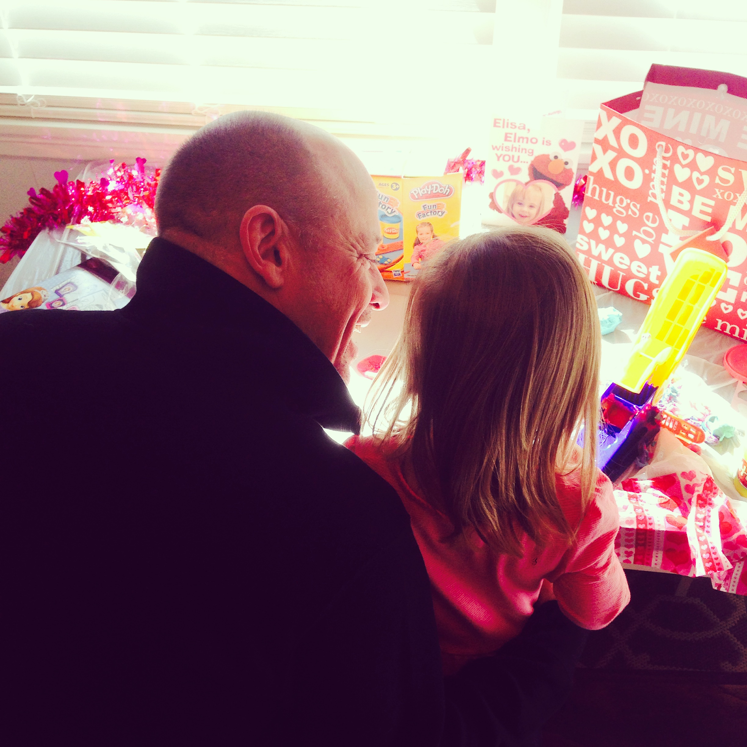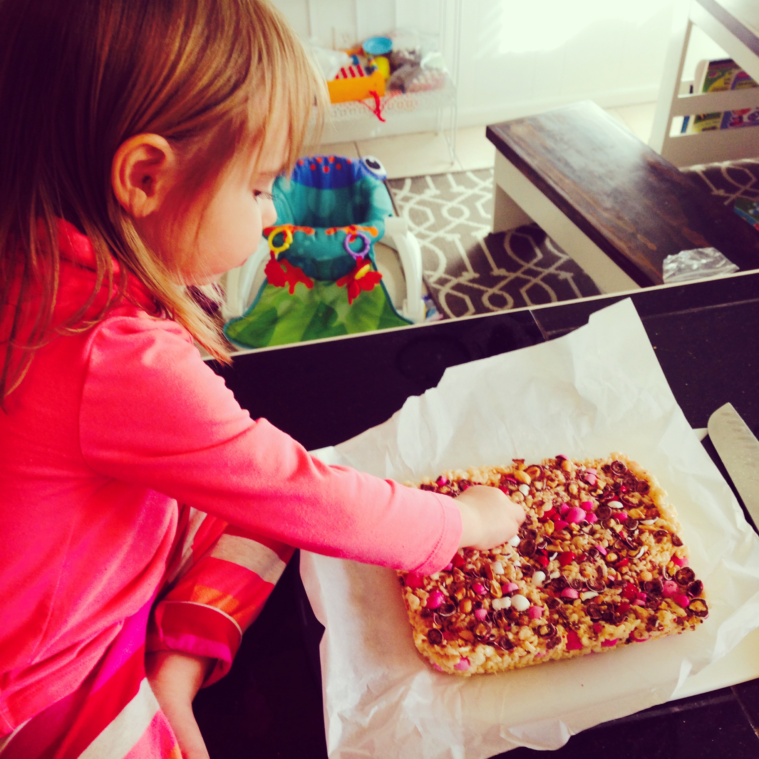 Late Friday night, Daddy helped me decorate the Bear’s play area. Thank heaven for the Dollar Tree. She woke up to quite a surprise on Valentine’s Day morning. Tampa and NiNi joined us for brunch. They brought the kiddos toys, and Elisa has been obsessed with her play-doh ever since. It was such a fun morning!