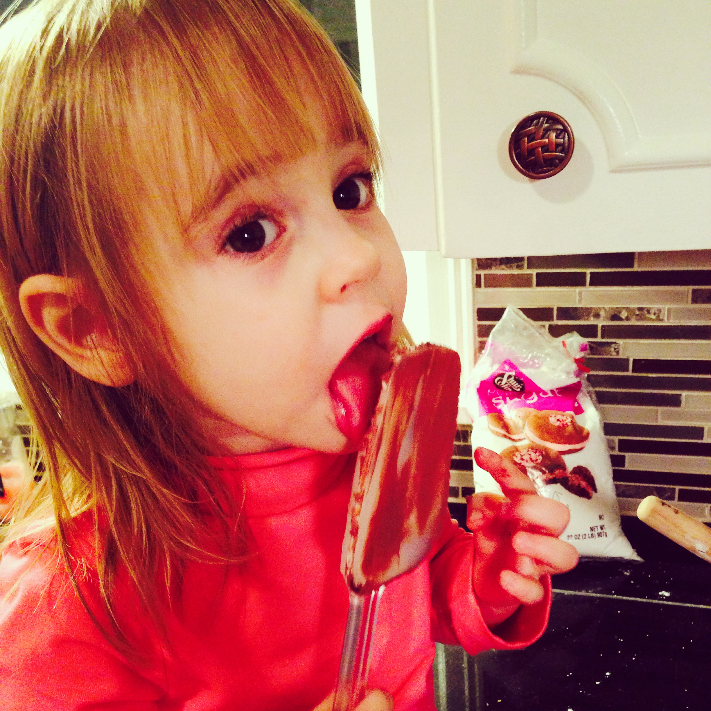 We also made lots of sweet goodies to send with Daddy to work. Don’t worry everybody – she had clean hands. 😉 And she only licked the frosting off the spatula after we were finished with it.