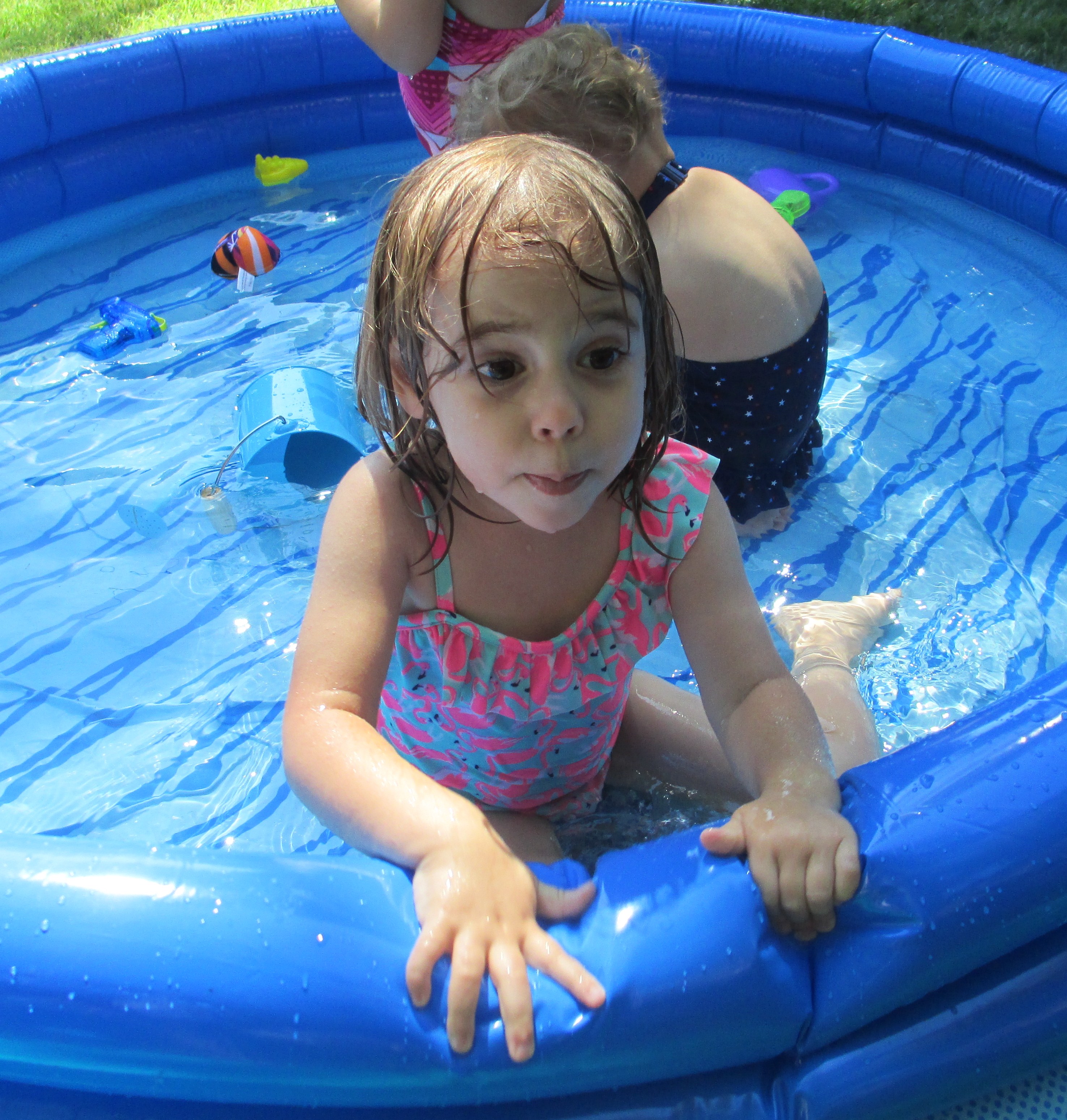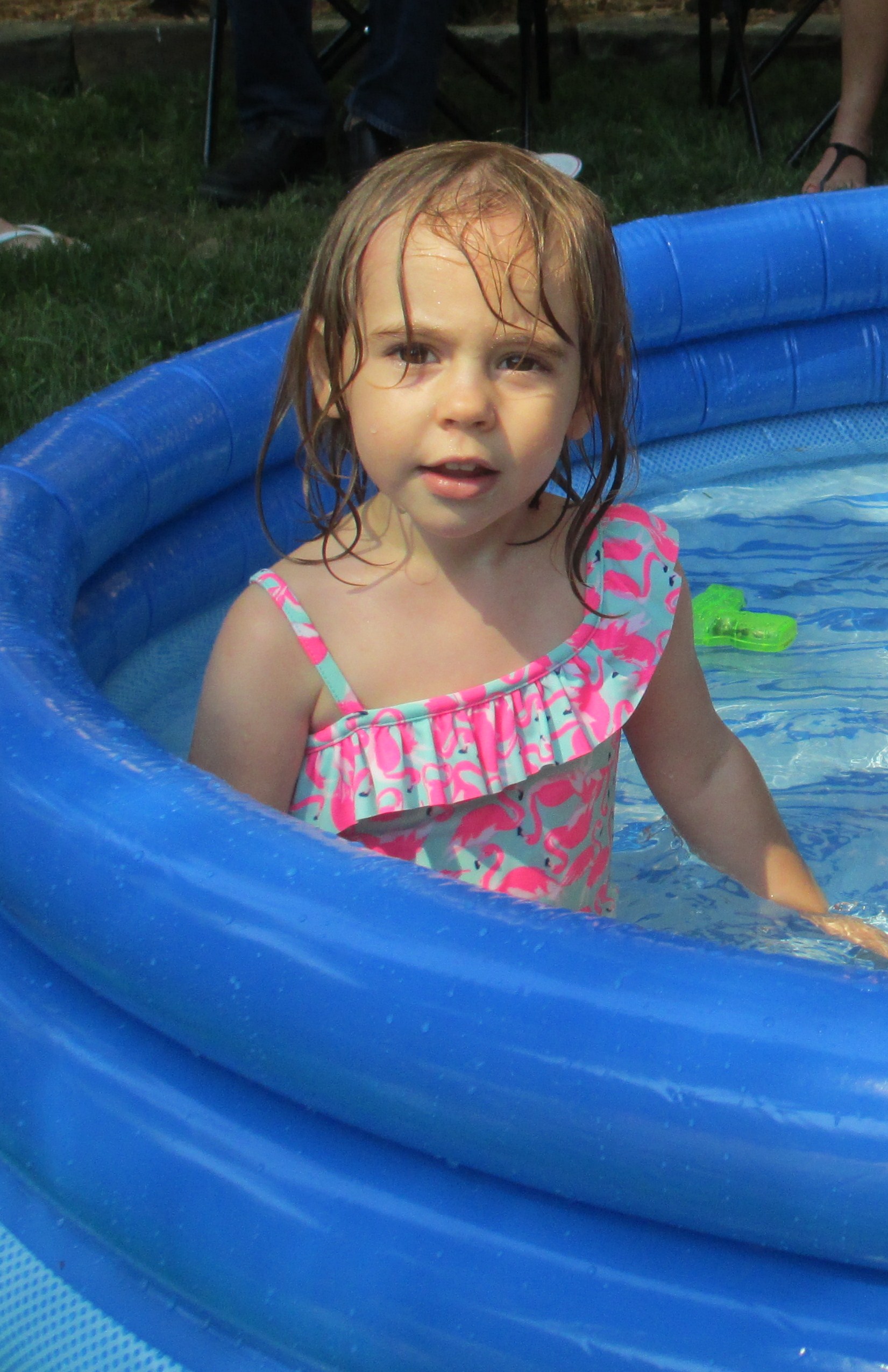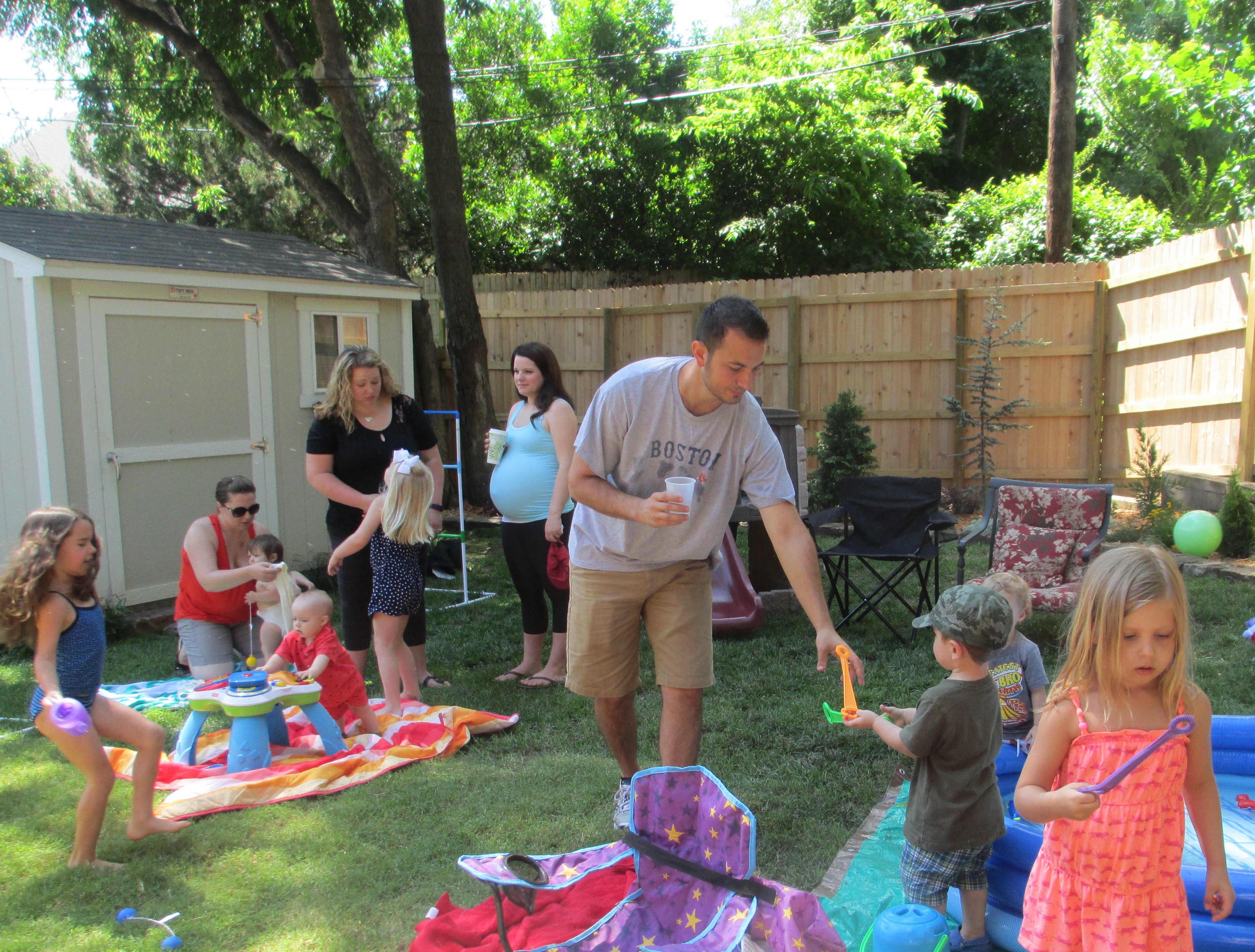 She had lots of friends come to splash, blow bubbles, and play yard games. We couldn’t have asked for better weather. A cool front came through the night before, so the temperature was perfect for spending time outside.