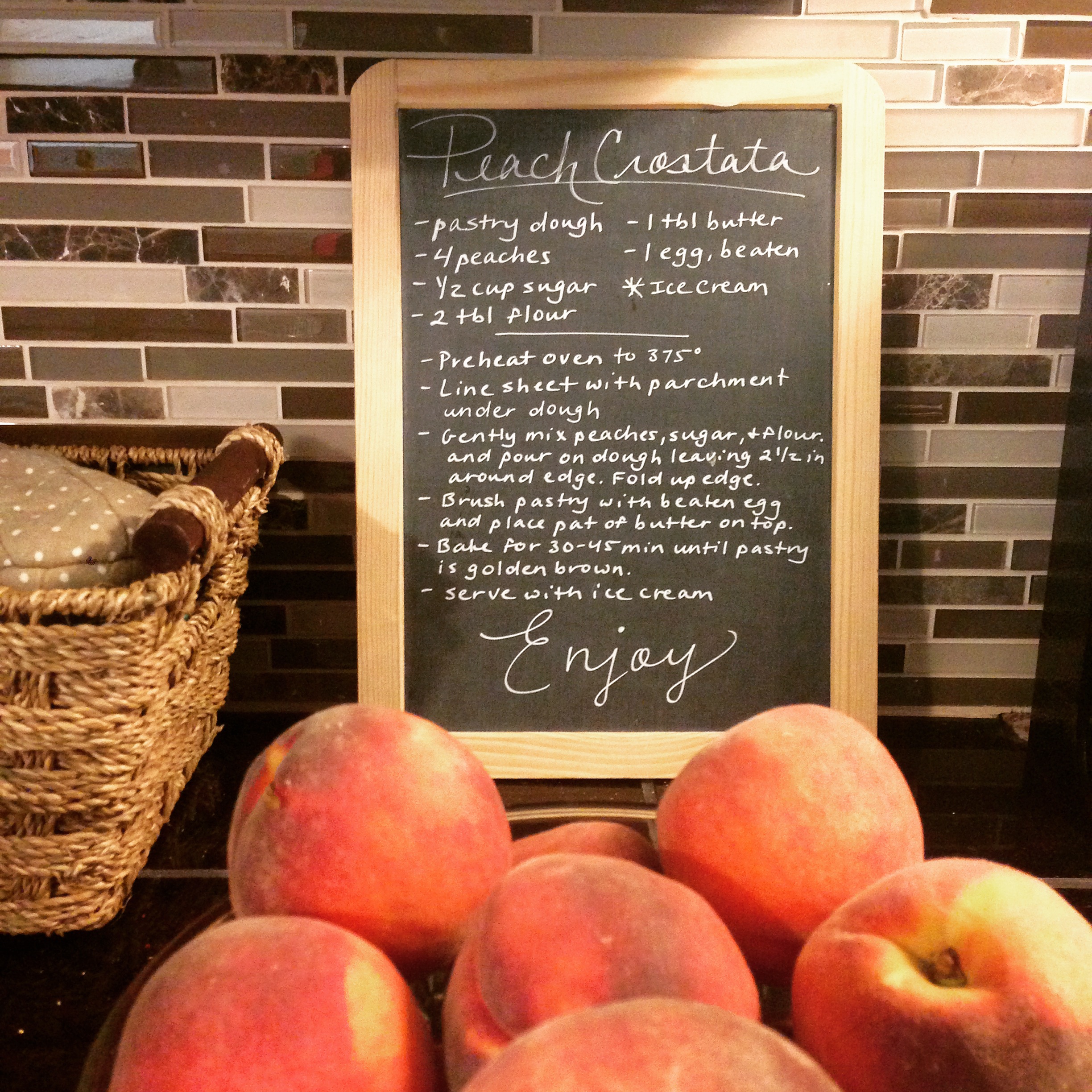 We wasted no time in making sweet treats with our peaches! First round – peaches only. Second round – fresh blueberries added in. The peaches were so juicy and so sweet. Perfect. They did not require the amount of sugar listed in the crostata recipe.